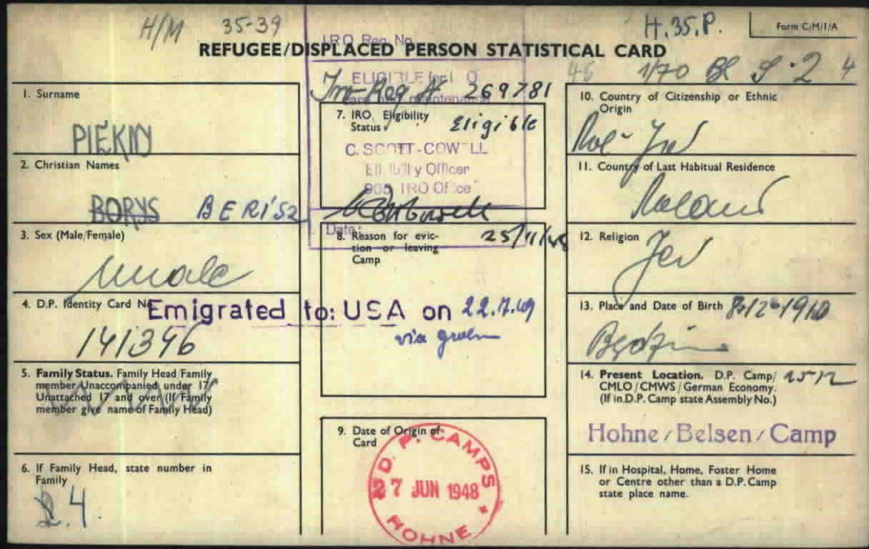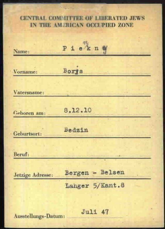 Quelle: Dokumente aus den Arolsen-Archiven, zusätzliche Angaben von der Familie von Boris Piekny.