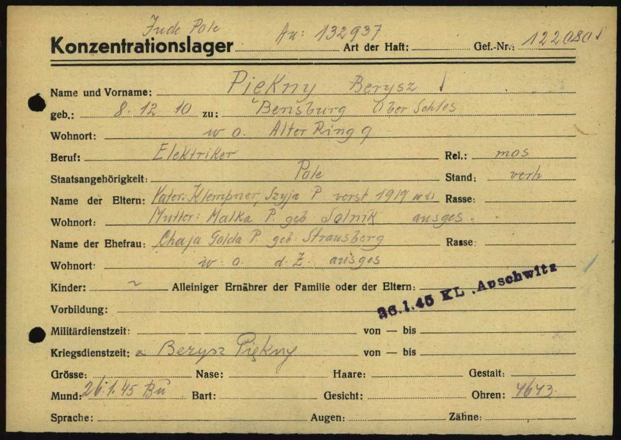 Quelle: Dokumente aus den Arolsen-Archiven, zusätzliche Angaben von der Familie von Boris Piekny.